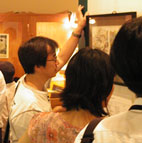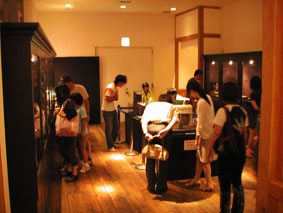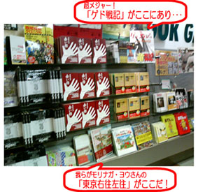 ■そして、あっという間の4週間が終わり撤収の日. アルバイトの静大生の男の子に「おねえさん、次は何をしましょうか?」と言われ、一瞬返事に詰まる。返事していのだろうか?おねえさんだなんて。どっきりかめらかしらん。 おかげで機嫌良くシャキシャキ働いた。わっはっは 貴重な一点モノその一。棚の中から谷明さんが実際に作ったワールドタンクの貴重な原型を手に取り、目を凝らして眺めた。緻密だ・・・凄すぎる・・・天才的だ。お客さんもこれぐらいの距離で眺めたかっただろう、と思った。 松村しのぶさんのレッドドラゴンは重かった。包む前に、もう一度ドラゴンの恐ろしい形相とにらめっこ。どうしてこんな怖い顔を作れるのだろう。爪が手に食い込んだ。それに鱗が痛い。うぅ、触っちゃったよん♪・・・などと浮かれてないで大事に扱わなければ。 お借りしたモリナガさんの原画は無事に昨日東京まで持参してお返しできた。ホッとしたよ・・・。 何よりも1点物は気を遣う。あたりまえだのクラッカーなのだけれど、盗難や汚れ、破損などがあっては大変だ。取り返しが付かない。展示にもウッカリモノだが心配性の私なりに細心の注意を払った。部品をチョイ加工して、額縁を壁にネジ止め出来るようにしたり、高さをお子様の手の届かない位置にしたり。そのネジ止め方法を思いつくまでは誰かが持って帰っちゃったらどうしようとか考えると心配で心配で。無事に思った通りの部品加工ができて、すご〜くホッとしたっけ。 昨日はその帰り道、東京駅構内の賑わう書店で、そのモリナガ・ヨウさんの新刊「東京右往左往」が凄く目立つ所に置いてあるのを発見!一人で大いに盛り上がり、こっそり証拠写真を撮った。ゲド戦記と同じ正面の棚だ!すごい! このイベント中から、次のフリマと、そのまた次に開催するクラフトアベニューの準備をしている。やることいっぱい、そんな8月だった。ほかにもいろいろあったのだけれど、取り敢えず今日は時間切れだ。また続き書きます。 今夜はこれから嬉しいミニパーティがあるの。第1回クラフトアベニューのときの出展者様同士が、その後仲良しになって、一緒に展示会をするとのこと。センスのよい手作り布小物の展示と販売。そのオープニングパーティに呼んで頂いたのだ。人の輪が広がっていたのだねぇ。そう思うと主催者としては嬉しいなぁ。お近くの方は11日までやってますのでぜひ覗いて見て下さい。