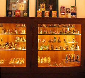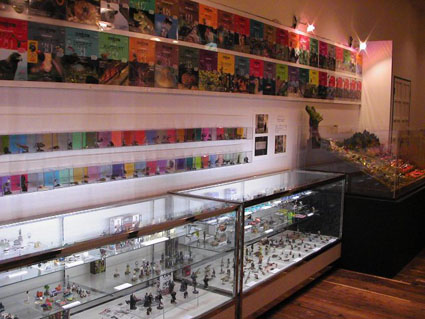 ■海洋堂さんコーナー担当(しかも一人)の私は、(勝手な解釈ではあるけれど)好きなものを好きな場所に好きなように並べて良い、という特権をフル活用。並べてるうちにどんどん欲しくなるフィギュアはもう市販されてないのが残念。それこそフリマで見付けたら買いたいぐらいだ。 あれはフィギュアをお借りする前、初夏の頃だった。「どれにします?」と海洋堂さんの本社で言われたときには心が躍った。ズラリと並んだフィギュアオールキャストの棚の中から、まるで「がっちり買いましょう」的に、じゃぁ、コレとコレと、これとぉ〜・・・と選び、その後ろを担当の方がメモしながら付いてきてくれる。その中から版権関係の難しいものを抜かして、ご用意頂いた。こんな楽しいお仕事ってあるだろうか、と思ったものだ。(もちろん選択するにあたり主催のテレビ静岡さんの意向を考慮して、ではあるが) もちろん脈略なく並べるわけにはいかない。無い知恵を絞り、海洋堂さんに手伝って頂き教えて頂きながらなんとか会場を楽しげに構成できたと思う。日本の天然記念物の本を壁に50冊並べた。キレイだった。最初、本を支える木枠の寸法が途中から違っていて、本が入らず作業中断、冷や汗をかいたり、全部同じ厚みだと信じていたら、箱の底から分厚いものが6冊ぐらい出てきて焦った〜!
