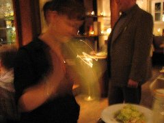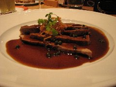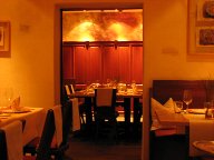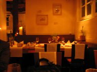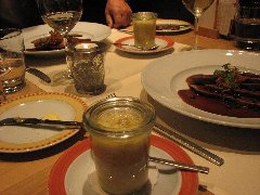すばらしくおしゃれなレストランで、創作フレンチ風ドイツ料理をいただきました。おいしかった〜〜! すごく味もよいのですが、おしゃれなんですよ、なにもかもが。店内の照明が暗いし、さすがにフラッシュはたきたくないし、あまりよい写真がとれませんでしたが。