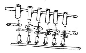土居さんのおっしゃっているので正解だと思います。私もCB750のチェーンを組み立てました。ランナーに並んだピンにプラ子さんのおっしゃる8の字金属パーツを通します。まずピンの1番目と2番目、3番目と4番目、5番目と6番目・・・・・・・・その次に2番目と3番目、4番目と5番目、6番目と7番目・・・・・・と重ねていきます。
