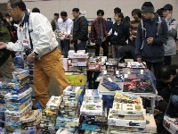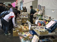 平成20年4月7日(月) 第7回モデラーズフリマのご報告 フリマおわって3週間たっちゃった〜 みなさん、ご無沙汰でした。 弟7回モデラーズフリマも無事に閉会し、気を抜く間もなく取材に原稿、次の展示会2つ、そしてミニフリマ3へ向かって走っています。いささか息が切れますが、お仕事が立て込むというのはありがたいことです。 今週は鳥取の倉吉博物館で開催される昭和レトロ展(山田卓司さんの作品展です)の準備に出かけたり、その後4月26日から5月11日まで清水エスパルスドリームプラザで開催される別の昭和レトロ展(これはいろいろなレトロものを集めた展示会です。プラモデル展示もあります。前売り券発売中!)、そしてその直後にミニフリマ(ホビーショーと合同展ですね!)。5月中旬まではトップスピードの駆け足、ダイヤル「強」状態です。 5月下旬、げっそりして痩せこけた私をご期待下さい。ぶははははは ■フリマ