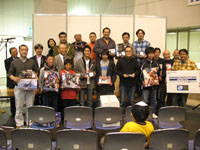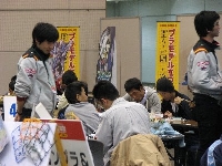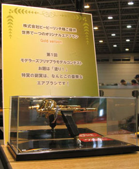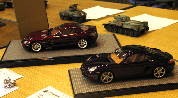 ちなみにネットで見つけたチラシの印刷屋さんに注文をしてみたのですが、自分でイラストレーターで原稿を作り、データ入稿して、両面フルカラーでいくらだったと思います?安くてびっくりしちゃいました。でもいくらだったかはヒミツ♪子どもにわかりやすいイラストを描いてくださった某有名モデラーの奥様にも感謝です。 最初に受け付けに来て下さった方は18歳の青年で、こちらも初めての段取りでどきどきしましたが、オープン後すぐに駆けつけて下さったことがとてもうれしかったです。 受付で模型少年が不安そうに作品を抱え、大人と事務手続きの話をして、一生懸命に作品カードを書く姿には、母性本能くすぐられっぱなしでした。子ども達は大人よりずっと当たり前に「賞をとりたい!」という素直な気持ちを言葉にしますし、自分より上手い子が現れるのではと、誰かのエントリーがあるたびにそわそわしているところなんか、本当に涙が出そうなぐらい可愛いのです。 大人の作品はさすが、大人。どうやったらこんなにきれいに塗れるの?と、唸ってしまうような作品ばかりでしたが、特賞の小林さんの作品はダントツで票を集めていました。審査委員長の金子先生からも奇跡的といわれたぐらい、美しかったです。タミヤニュースにもコンテストの報告をしてありますので、お楽しみに。 賞品も豪華でしたよ〜。タミヤ、バンダイさん、ハセガワさん、フジミさん、GSIクレオスさん、新撰組さん、塩川公明堂さん、ホビージャパンさん、アーマーモデリング&スケールアヴィエーションさん、モデルアートさん、そして、ゴールドの高級エアブラシを特別に作って下さったビービーリッチさん・・・多くの企業様のご協力も大きかったです。 あと、エントリーして下さった方々、受付作業をお手伝い頂いた方々、特別審査員を受けて下さった金子様、土居様、高石様、絶妙な司会をしてくださったあの方にも、この方にも・・・・・・とにかく私一人ではどうにもできないことを皆様のおかげで任務完了できたということを実感し、感謝の気持ちで一杯です。 一生懸命広報したわりに、やはり初回は様子見が多いのか・・・・出展作品数はそれほど多くありませんでした。土曜日はどうなることかと思いましたが、日曜日には朝からエントリーも続き、全部で66作品。でも、初回の集計作業としては、これで結構ぎりぎりの時間を使ってしまい、次回はもっと増えたときのために、方法を考えないとな、って思います。たとえば土曜日に投票までやってしまい、土曜の夜に飲みに行かずに集計をして、日曜日発表とか。数が増えたらそうしないととても対応できそうにないな、って思いました。 8「トラタヌ!」 昨日はコンテストに参加してくれた小学生の少年二人組の学校に、写真を届けてきました。田宮社長と一緒に撮った記念すべき写真ですから、ぜひ、と思って。喜んでくれるといいなぁ・・・・ 今回の反省点の筆頭は、「作品カードを回収しなかった」ということです。まさにどたばたしていて「うっかり」してしまったのでした。心を込めて書いてくれたコメントは全部ゆっくり読みたかったし、ずっと保管しておきたかったのに・・・ 事務手続きの際に住所欄を任意にしたため、連絡が付くかたばかりではなく、残念です。これをみていたら、ぜひ、返送して頂きたいです。よろしくお願い致します! それから、買ったプラモデルをすぐに作ることができる場所としてご用意したモデラーズサロンですが、最初はあまり使っている人がいなくて空いていたのに、2日目になるといつの間にか一杯になってました。やっぱり、だれかが座っていると座りやすいっていうのもあるでしょうけど、買ったら開けたい、これは正常な行動でしょうね〜。ひたすら手を動かすローガン梅本先生や、モデラーさんの相談に乗る土居先生、ずっと作り続けておられたモデラーさん、楽しそうに相談しながら作る模型少年たちを見ていたら、次回もぜひこういうコーナーを作りたいって思いました。