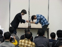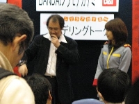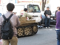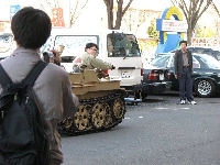 子ども達が多かったことで、UMAのみなさんのコーナーも賑やかになりました。受付まで聞こえてくる歓声を聞けばプールを作った甲斐もあったものだと思いますね。UMA(動く模型愛好会)の皆さんとRCタンク(無線操縦戦車模型製作者連盟)の皆さんは、いつもボランティアで参加して下さり、忍耐強く朗らかにプラモデルで遊ぶ楽しさを広めて下さっています。心強いです〜。順番を並んで待ったり、壊したら謝ったり、賞品をもらったらお礼を言ったり。子ども達の方も前回よりはマナー向上しておりました。 (私が見た限りでは) タミヤさんでは沢山の商品を並べて下さり、お買い物の方で押すな押すな、という感じでした。実演コーナーもあり、お悩みのモデラーさんはここで聞けば解決するんじゃないかな、っていつも思うのです。ミニ四駆のコースもあり、子ども達で賑わっていました。 バンダイさんコーナーでは早々とガンプラ教室1000人達成、これもうれしいことでした。あのかっこいいユニフォームが会社の制服だと知り、びっくりすると同時にうらやましくなりました。恒例となった川口名人のモデリングトークも好評でした。一度でいいから最初から最後まで座って聞いてみたいものですが、主催者はそうもいかず、そういうことが残念です。 GSIクレオスさんとモデルアートさんのコーナーでは、作例作品展示と長谷川伸二さんの「そこが知りたい!ハウツー・エアブラシ」が好評、塗装コンテストに合わせた企画を催して下さいました。アートボックスさんでは恒例となった書籍広げ市(勝手に命名。)を開催、立ち読みOK、それにすべて表紙が見えるので選びやすいんですよね。 実車展示としては、「ケッテンクラート」や「シュビムワーゲン」のオリジナル(もちろん両方とも走行可能)、日本で一番古いウニモグ(前回と同じオーナーさんの走行可能な実車です)、そしてテレビ雑誌でも紹介されている「自作戦車」も。充実した展示となりました。大事なものを多くの人に見せるということは神経使うことでしょう。快く展示のために駆けつけて下さり、ありがたかったです。 話は飛びますが、閉会後の搬出作業時、ケッテンクラートのエンジンを掛けたところで、思わず私は場内アナウンスを入れてしまいました。「ケッテンクラートの搬出です〜!」片づけの手をとめてカメラを片手に皆が集まったところで、轟音を残し、あっというまにケッテンクラートは走り去ってしまい、そのスピードに皆唖然としたものです。 8「はえぇ〜〜〜〜!」