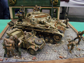 さて、タミヤフェアの続編です。 フリマのブース前に模型クラブさんが展示されていました。その中にフリマ出展者の方を発見!おぉ!早速ご挨拶です。初対面ですからものすごく緊張していたのですが、みなさんの気さくな笑顔のおかげで、何とかヘンなことを言わずに済んだと思うのですが。(冷汗) |