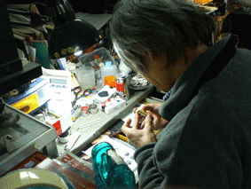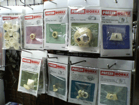 ホビーショップマムート(フリマでの屋号は「パンツァーワークス」)の熊さんみたいな杉本さんと、いかにも職人風の原さんは、とても気さくに応対してくださり、私の最初の緊張はどこへやら。フリマに向けて新しい商品も作って下さるとのこと!やったぁ〜やったぁ〜! 店内のお客さんとも歓談、写真も撮らせて頂いた。
