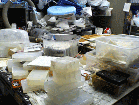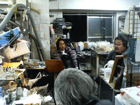 ちっともヒミツコウジョウではなかった。でも、床も机もすごいことになっていて、まさにガレキの山!いかにも地下の秘密工場のたたずまいだ。(ビルの2階だけど) 調子に乗って内部に入ったものの、撮るべきものが何かよくわからず、結局、潜入のはずが見学会のように撮影角度等ご指導頂きながらシャッターを押した。