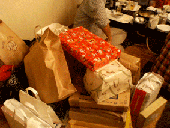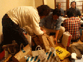 国際色も豊かなメンバーだった。すき焼きをつつきながら、話もはずみ、ビールの瓶もどんどん空になっていく。そして、宴もたけなわ、恒例のプレゼント交換が始まった。闇鍋形式で、すべて包まれているが、一応ヒントが書いてあるらしい。くじ引きで順序が決まって一番の人が選び始めると、もう回りも口を出さずにいられず、すごい賑わいとなった。中身はもちろん陸戦もののキットだ。選び方も真剣そのもの、やっと決まったら皆に見せびらかしたりもする。