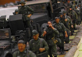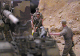 ・・・白人の顔はびっくりするほど透けるような白で、肌色にはほど遠い。しかも気温によってすぐに頬がピンクになる。たとえば寒いときの白人は、白い顔でも寒すぎて頬はピンクに紅潮しているだろう。鼻の周りもそうだ。そんな色に塗ったら、いかにも寒そうなジオラマになると思うだけどね。銃を構えた若者は怖くて顔面蒼白かもしれない。そばかすも一杯あるかもしれない。だけど、オレンジっぽい濃い顔色が多いのはどうしてなんだろうと単純に思ったわけだ。