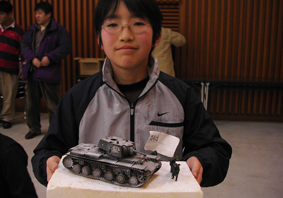 何よりも驚いたのは、雪景色だと思ったジオラマの白い台が、実は発砲スチロールで、それを使った理由が「他になかったから」というかわいらしい理由で、しかもそれを作ったのが少年だったということ。しかも、そのしっかりした少年が・・・うちの2号(次男)と同じ歳だったということには思わず声を上げてしまったぐらいびっくり。うちの2号がゲームばかりやっている時間、彼は丁寧に戦車模型を組んで仕上げて塗っていたんだ。こういう少年には頑張ってもらいたい。彼のお父さんは、息子さんの受賞に目を細め、アーマーモデリング編集長から住所を聞かれて親子で大いに盛り上がっていた。きっと次の次ぐらいのアーマーモデリングが送られるのを心待ちにするのだろうな。そして、はやる気持ちでページをめくるんだろうな。いいないいな♪