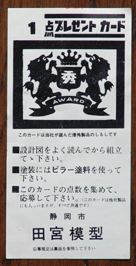 せっかく長い間キットの中に入っていた物です。たとえ紙一枚でも今更抜き取ることははばかられますし、「寄贈」は謹んでご辞退申し上げましたが、 こうやって写真を送って下さり、40年の時を超えて、隠れていたものが目の前に・・・。感謝感謝、これで充分です。