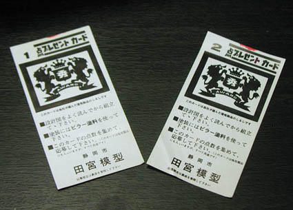 といったわけでタミヤの方は文字だけが書かれた『推薦状』をイメージして「見たことが無い」と申し上げていたのですが 今から30点集めたら貰えますか? うわ、「このカードは当社が選んだ優秀製品のしるしです」って・・ここまで勝手に書いてしまうとは・・・なんたる自信。でも各メーカーさん用にそれぞれ作ったというのは青年も結構頑張ったんだね。アイディアとしてはなかなか斬新だったと思うなぁ。余計なことだけど改行して一文字目の「。」がちょっと可愛い。 私が想像していたより大胆なものだったことは事実。実際にカードに書かれた文言を見ると、この無謀とも思えるカードをほんとにキットに入れて下さったタミヤさん、LSさんには改めて頭が下がります。 その節は、弊社社長が大変お世話になりまして・・・ことの次第を知るのに40年掛かってしまいました。何しろピラーは舶来かと・・・。(笑) そして、6月1日、ちょうど私が美容院で髪を短く切っている最中に以下の続編メールを戴きまして、こっそり携帯見ながらニンマ〜リしているのを、10年来お世話になっている美容師さんに意味ありげに笑われてしまいました。 なんか、勘違いされちゃったかな〜(笑) まさかプラモ関係の話だとは思わないでしょ〜からね〜。 ====================== プレゼントカードが当研究室からも発掘され始めました 100円のキットには1点 200円のキットには2点 のカードが入っていました。